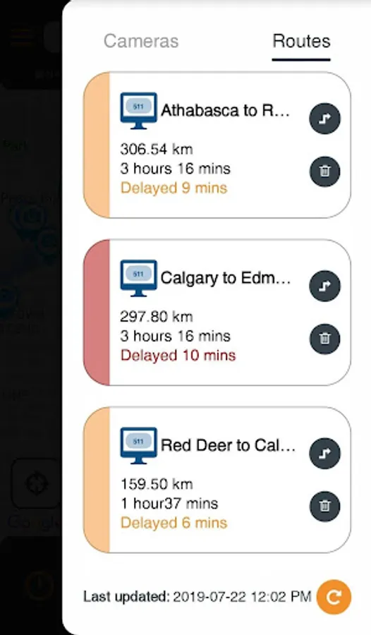 The 511 Alberta mobile app provides real-time road and traffic information to Alberta drivers. Construction, congestion, and other delays are centrally monitored by the many cameras, sensors, and other data available to Alberta Transportation. Our 511AB app will help you plan your route, anticipate delays, and get where you're going faster.