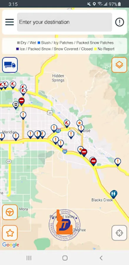The Idaho 511 app provides near real-time highway and traffic information to drivers to help them safely plan their route. This includes information on construction, incidents, road closures, and weather alerts on roads across the province.