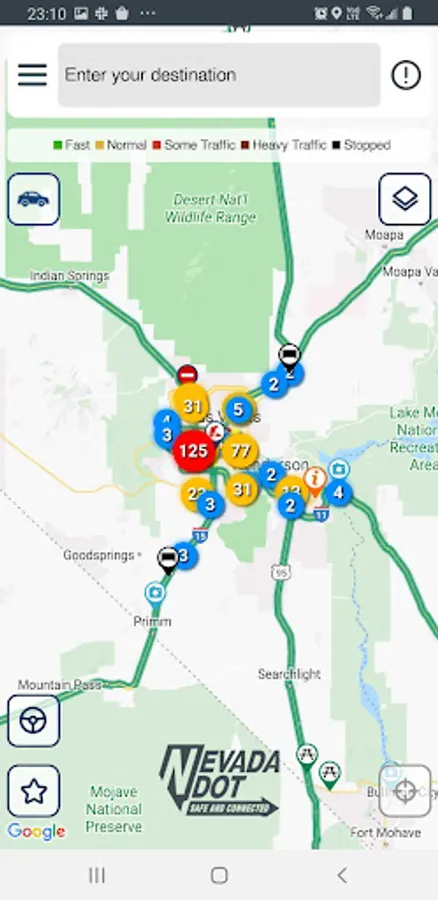 The Nevada 511 app provides near real-time highway and traffic information to drivers to help them safely plan their route. This includes information on construction, incidents, road closures, and weather alerts on roads across the state.