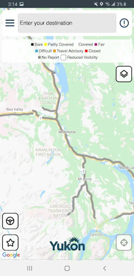 The 511 Yukon mobile app provides real-time road and traffic information to Yukon drivers. Construction, congestion, and other delays are centrally monitored by the many cameras, sensors, and other data available to the Government of Yukon. Our 511YT app will help you plan your route, anticipate delays, and get where you're going faster.