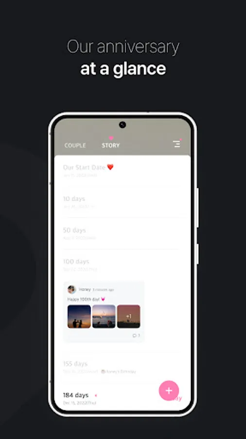 Your anniversaries, date diaries, each other's birthdays are all in one place!