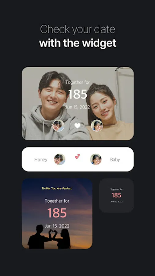 - Check out anniversaries with loved one and each other's birthdays with various widgets on the home screen!