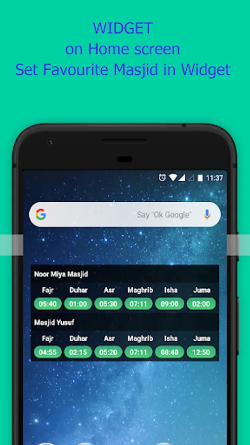 3. Set your favorite masjid in WIDGET, and see salah times on Homescreen only