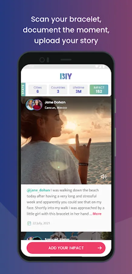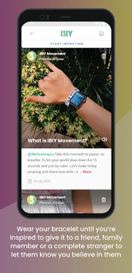 App users will have the ability to scan a bracelet that they’ve either purchased or received from someone else. This will give users the ability to see every single person who has had the bracelet before them and all the stories attached. Once the bracelet is on your wrist you can leave an empowering message for those who will receive it in the future. After users have given their bracelets away, the app will showcase all the people, stories and impact created as each bracelet travels across the world. Individual impact just became measurable.