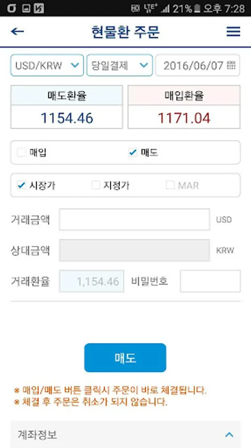 - (Spot Exchange) Spot exchange transactions are possible under various price conditions such as market price, limit price, and MAR.