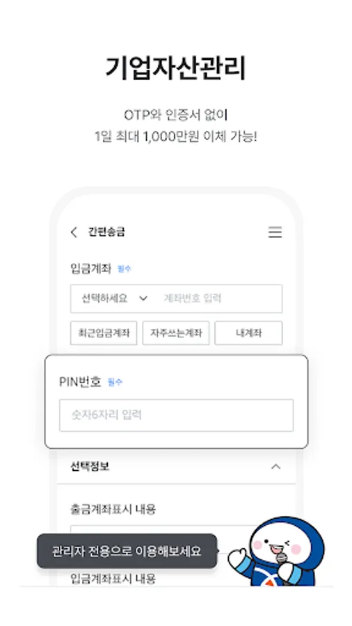 • The cumbersome user password has been deleted. Transfer is possible only by entering OTP and certificate without entering user password.