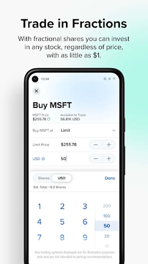 With fractional shares, you can put small cash balances to work to maximize your returns! No trade is too small, and no stock is too expensive. Invest with as little as $1, regardless of the price of a stock. Unhappy with an investment? Swap stocks you own for stocks you would like with a single tap.