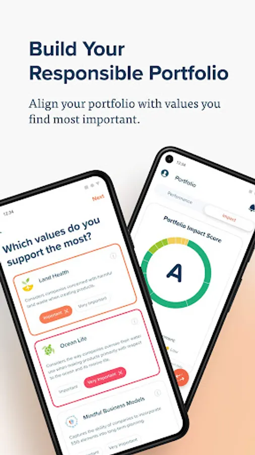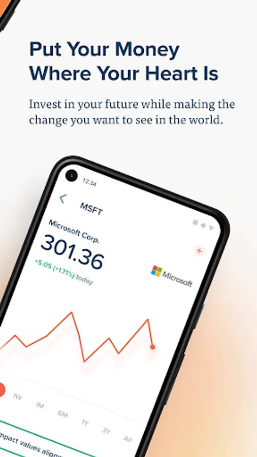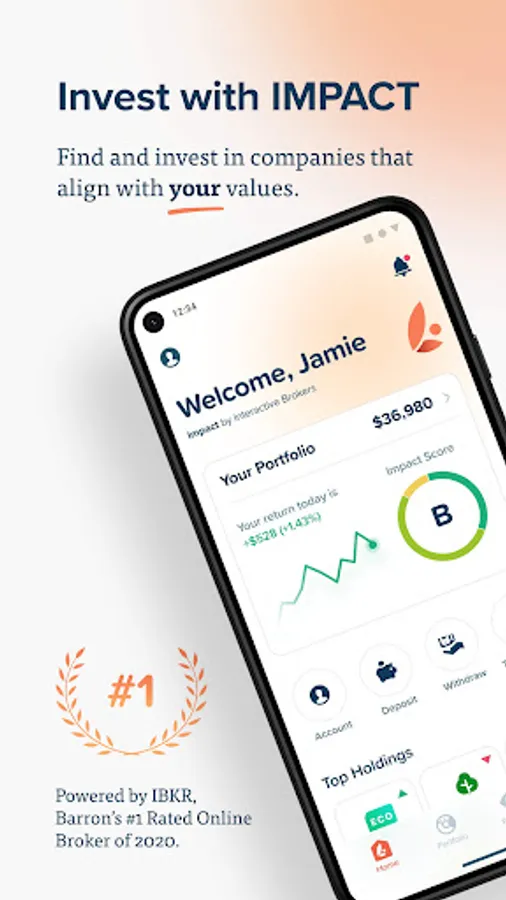 Sustainable investing, simplified. IMPACT by IBKR provides the tools and technology that make it easy to invest responsibly in companies that uphold the principles you believe in. First, select the values that are important to you, then Explore to find companies with similar values that fit your investment objectives. Next, build your portfolio of US stocks and funds completely commission-free. Monitor your portfolio's performance and grade with a tap. Want to improve your portfolio grade? Use Swap to trade out of one position and into another with a single order.