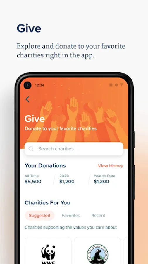 Make more of an IMPACT by donating to your favorite charities through the IMPACT app. Tap the Give icon, search for or select a charity, specify the amount you’d like to give and submit. See your giving history using the Donations tab in the Transaction History page.