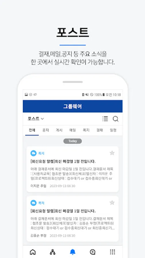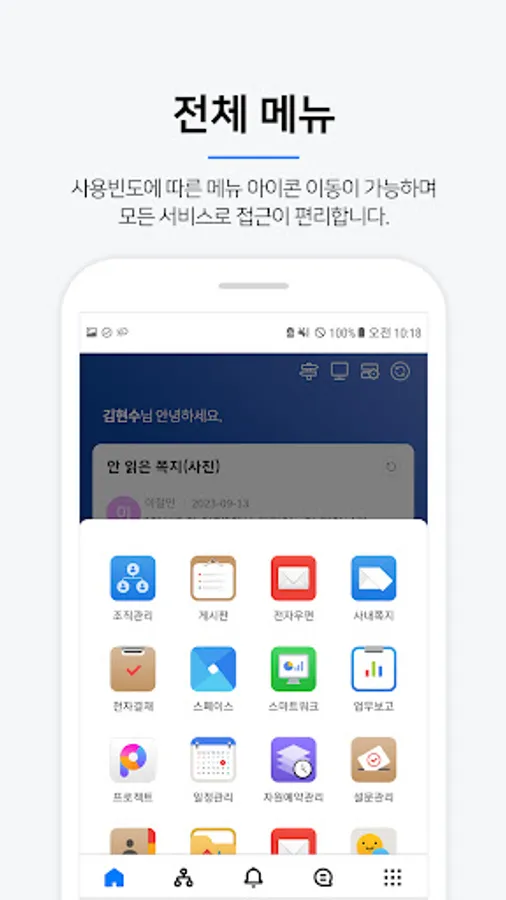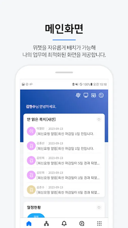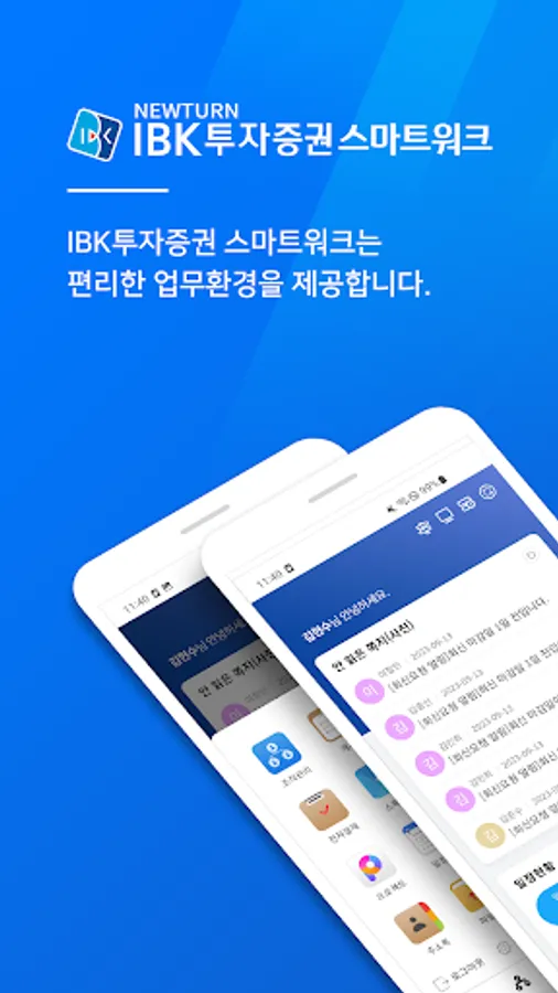 - You can freely use the major services provided by IBK Investment & Securities groupware, such as email, electronic payment, schedule management, bulletin board, and employee address book, in a mobile environment to check and process work without restrictions on time and location.