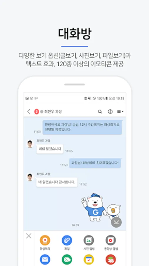 - 1:1, 1:N conversation, conversation invitation