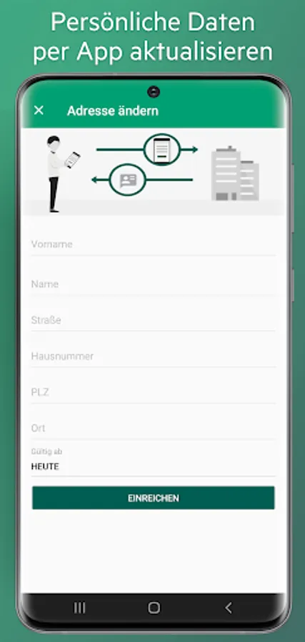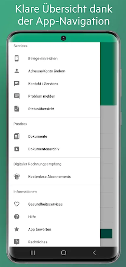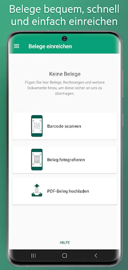 • Submission of your documents with the photo function, the barcode function or the PDF upload function