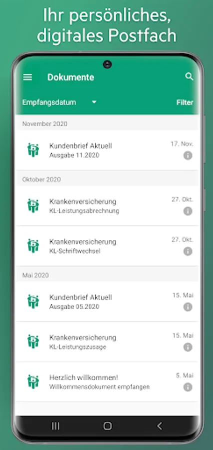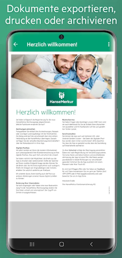 All receipts are encrypted and transmitted to HanseMerkur via the app. All documents are encrypted in the app and are only decrypted when you want to view them.