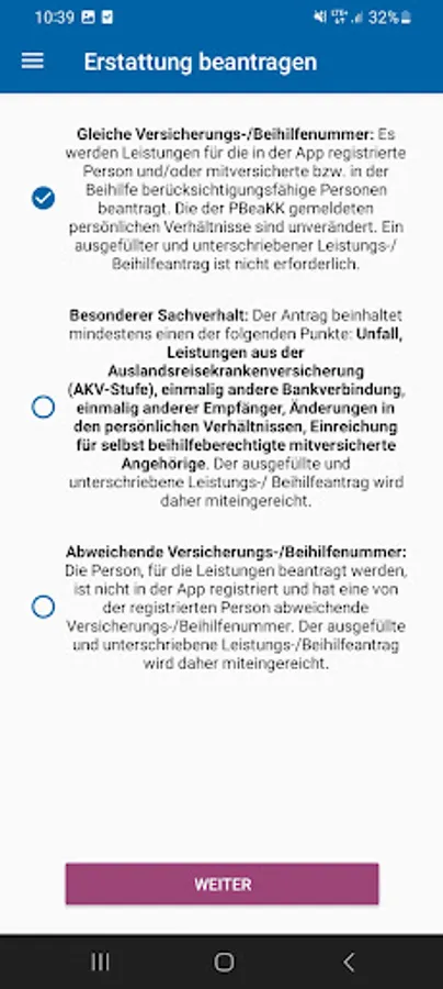 The "application-free" variant applies to reimbursements that are applied for for the insurance number registered in the app. Confirm your data again in the app. In this case, only your invoices, receipts and prescriptions are required for your submission.