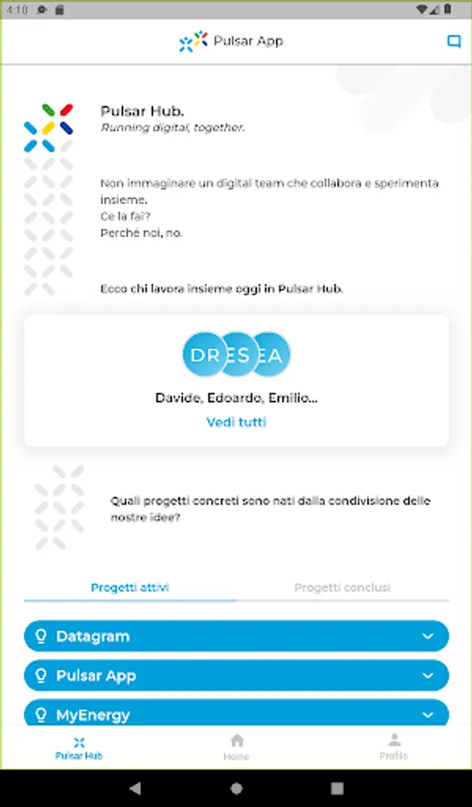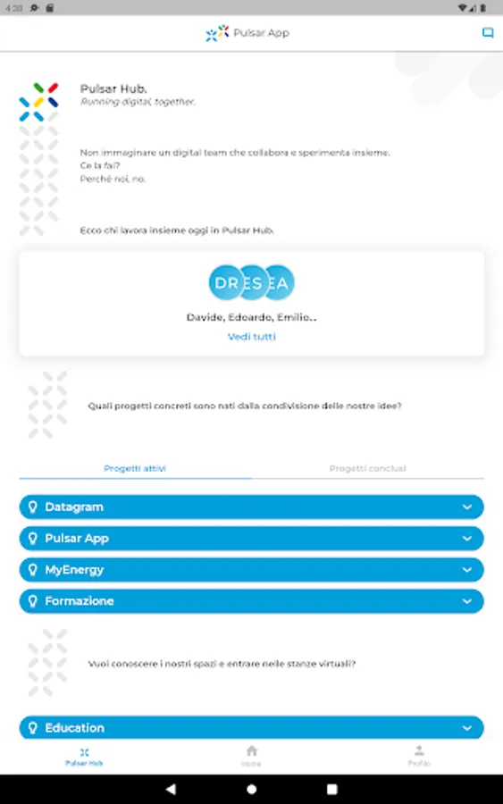 The objective of this application is to improve and streamline the work in the PulsarHub. It is used to manage human resources, spaces and projects using practical tools that are always at hand.