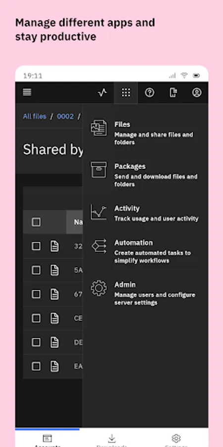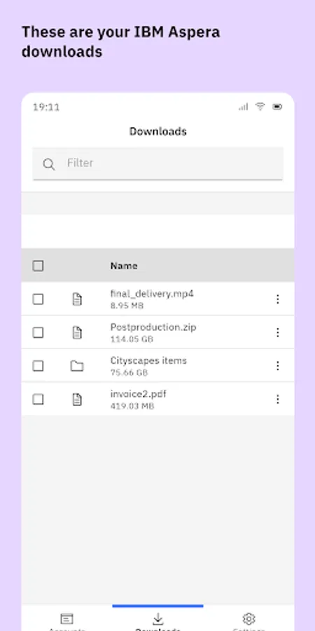 Simply link your IBM Aspera server account on the app to upload, download, and share files from anywhere.