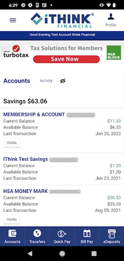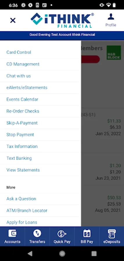 4. Deposit checks 5. Pay bills and iTHINK Financial loans