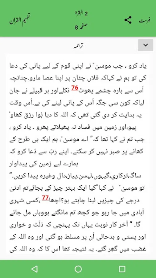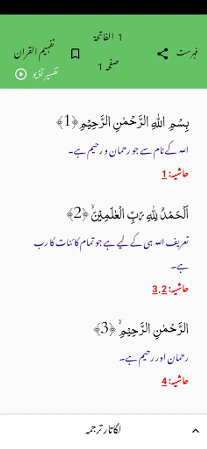 Tafheem ul Quran app presents Urdu translation and tafseer of the Quran with easy navigation and browsing of the content using