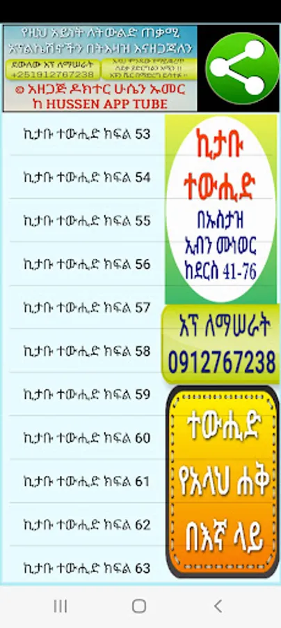- This app is designed in such a beautiful way by Dr. Hussain Umar, we also prepare Quran lessons, Hadith lessons and tafsir applications by order. You can reach us on this phone number 251912767238.