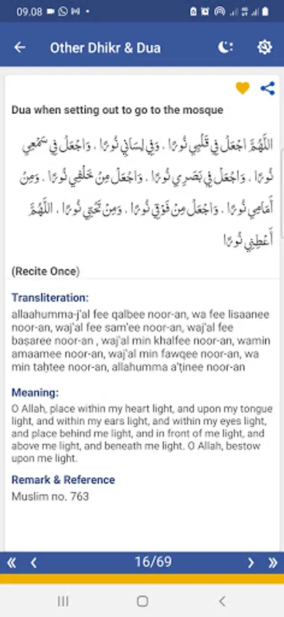 The app has many useful features such as morning dhikr, evening dhikr, after prayer dhikr, favourite dhikr, ayah ruqya, audio recitation. And also all dhikr and duas are available in English and Bahasa (Indonesian) language as well