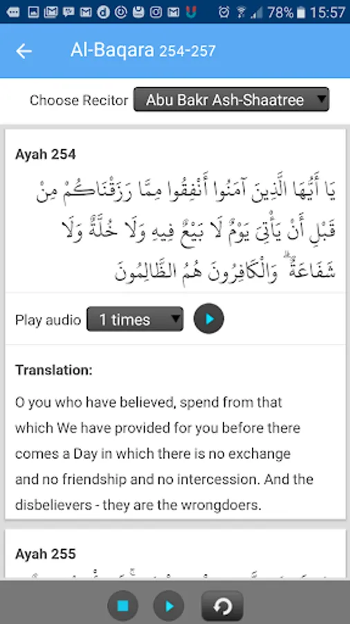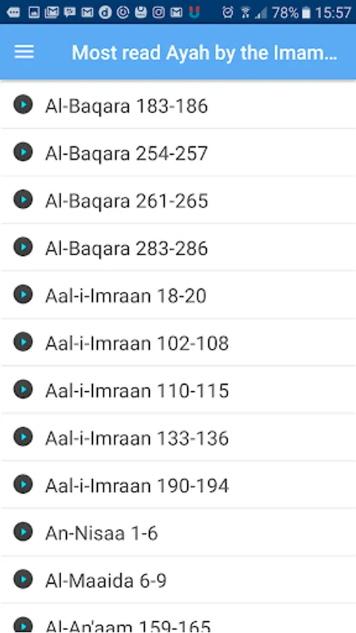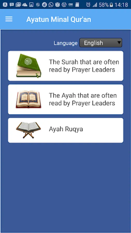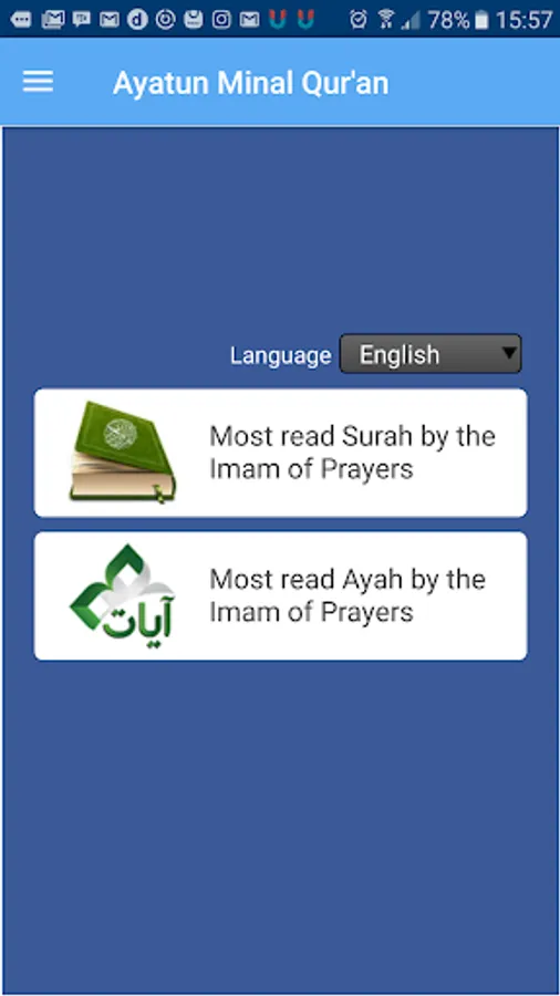 - Letters (surah) and verses (ayah) from the Quran that are often read by the prayer leader (imam of prayers) with translation in english and bahasa, and be equipped audio that can be played many times to make it easier to memorize.