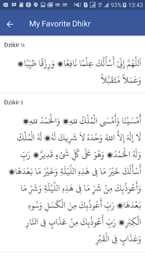 - You can share certain dhikr to your friends on Whatsapp, Facebook etc.