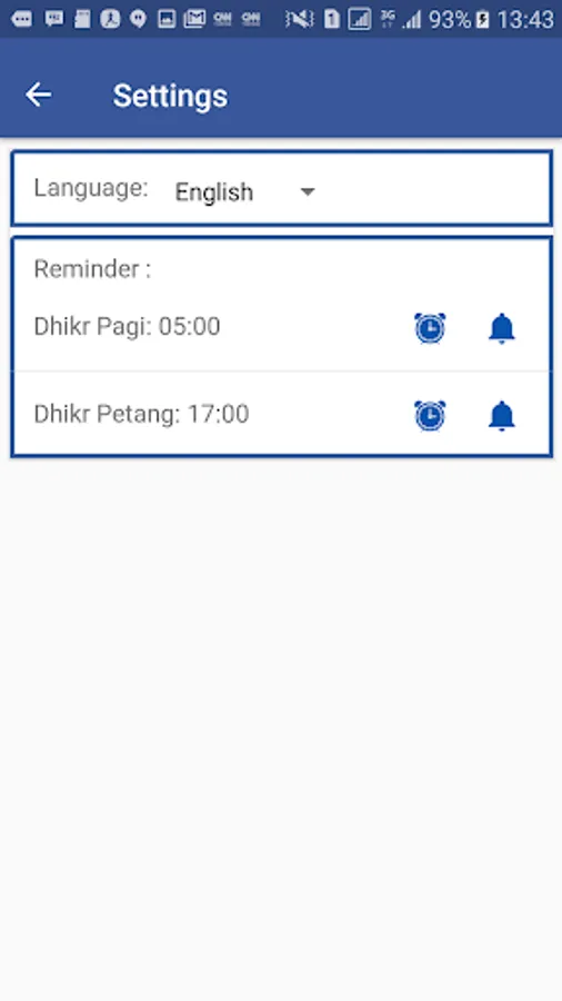- All dhikr and duas are available in English and Bahasa (Indonesian) language as well.