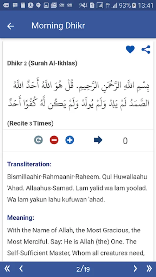 The app has a simple, clean and elegant design with many useful features such as categories (morning dhikr, evening dhikr, after prayer dhikr), favourite dhikr, audio recitation, dhikr of the day notifications, search and share dhikr. And also all dhikr and duas are available in English and Bahasa (Indonesian) language as well