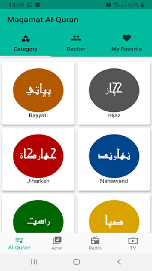 - List of categories of Quran recitation (bayyati, hijaz, jiharkah, nahawand, rost, sikah, and shoba)
