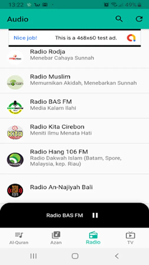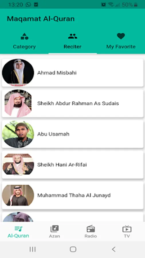 Application that contains a collection of Islamic media such as audio of Maqamat Quran recitation, adhan audio, radio and tv streaming for muslim. With this application you can also search the audio and add it to your favorites.