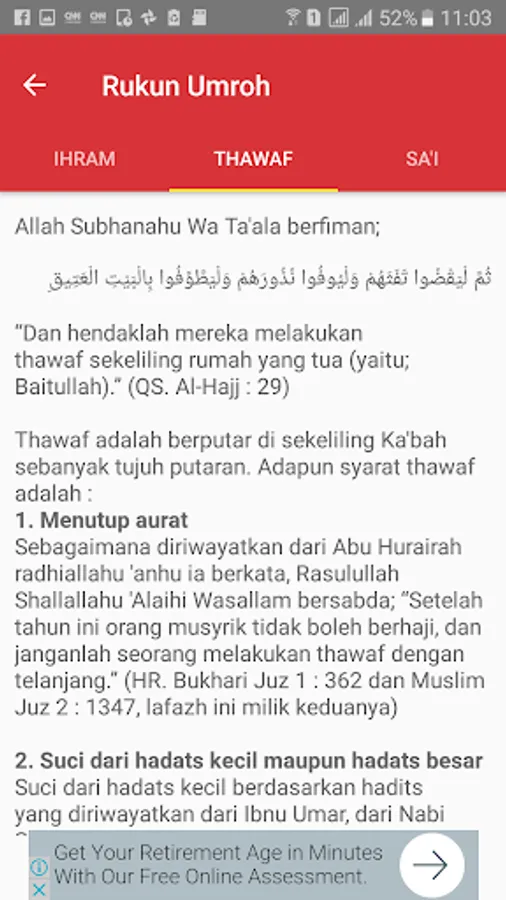 This application contains the procedures for performing Hajj and Umrah according to the Sunnah of the Prophet S.A.W accompanied by videos of Umrah rituals and there are audio readings and prayers about Umrah that can make it easier for Umrah pilgrims to memorize them.