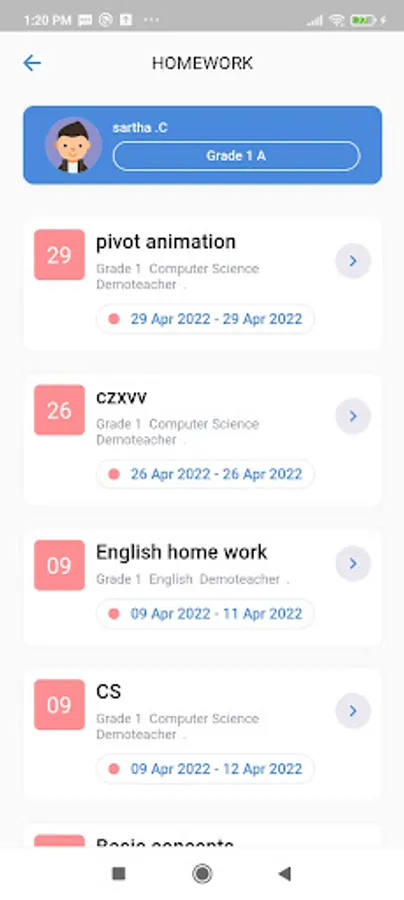 Track school activities namely, Homework, Online Class, Overall Performance of class and students.