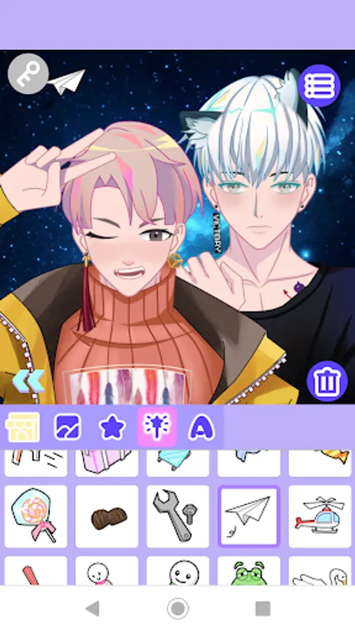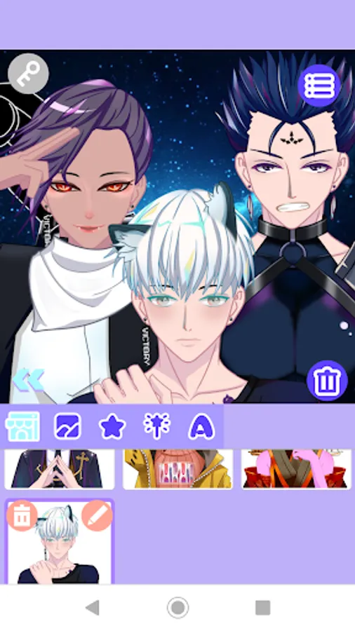 Wanna create a brand new pretty boyfriend character of your own, you've got the right choice. With this application, you can design lovely cartoon and anime avatar at your wish. There are rich collections of eyes and haircuts of your desired color, eyebrows, mouths, beautiful clothes and background. Just under your fingertip, you can create your favorite boyfriend freely. Moreover, you can make these figures as wallpaper or share with your friends.