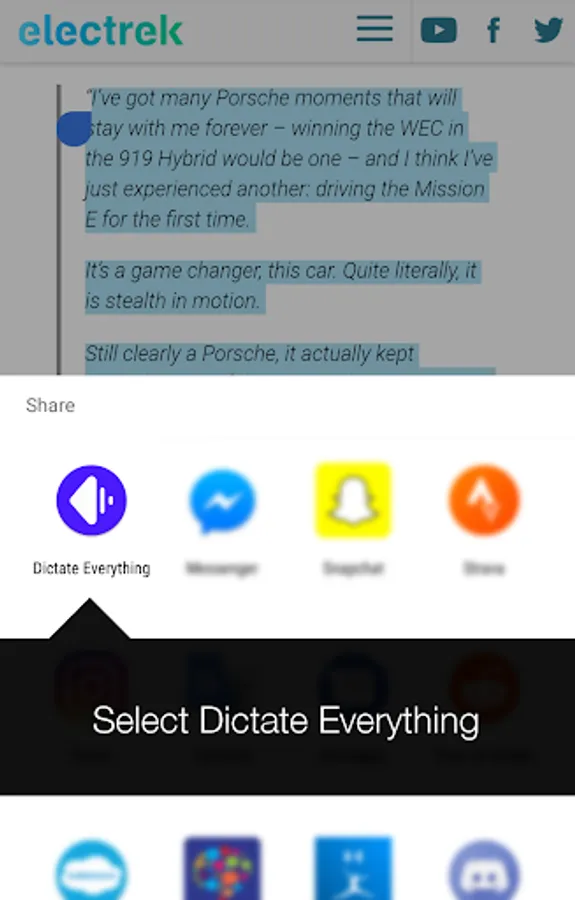 Listen to any text on your phone by sharing it to Dictate Everything.