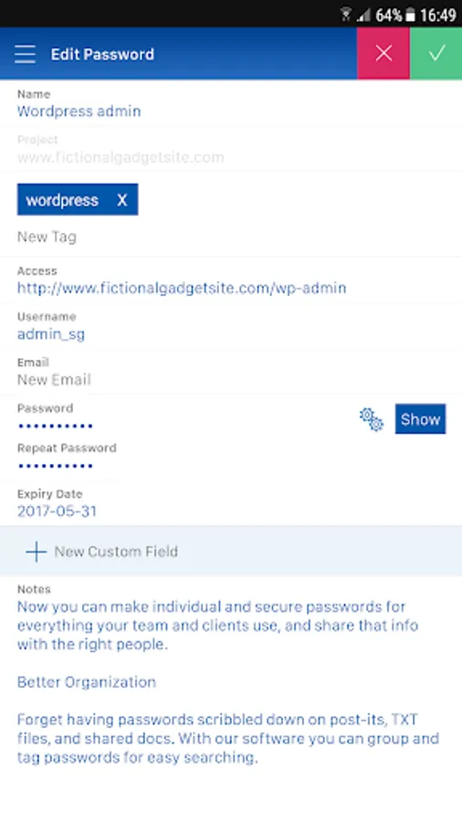 Team Password Manager is a multiuser password management software that allows your company to manage passwords efficiently and securely. It's a self hosted web app that you can now connect to and use natively from your Android smartphone.