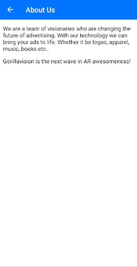 We are a team of visionaries who are changing the future of advertising. With our technology we bring your images to life. Whether it be logos, apparel, photos, music, books etc... Gorillavision is the next wave in AR Awesomeness!