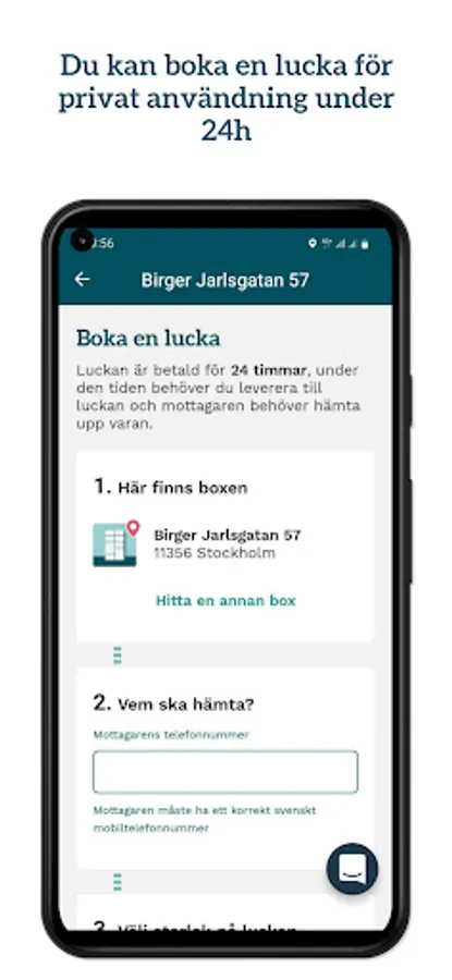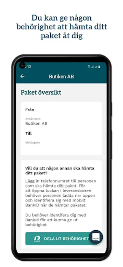 To be able to pick up a package as a recipient, you need to use this app, your phone number and BankID to pick up a package after SMS notification.