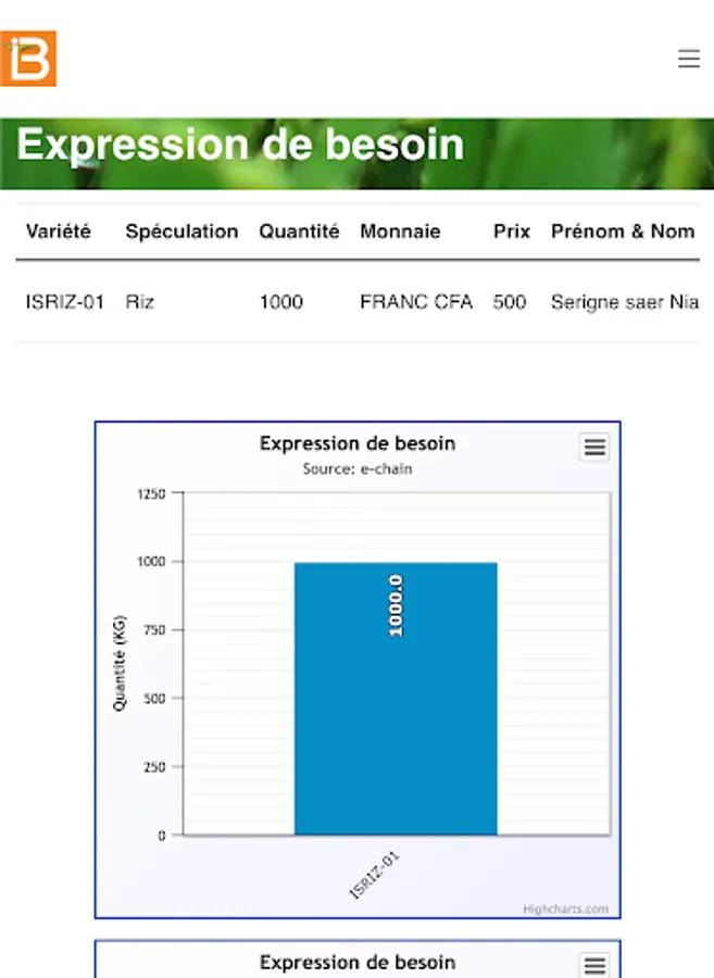 E-chain est une application qui donne les disponibilités en semence. Avec le qr code sur les variétés, on peut retracer facilement la variété de culture.