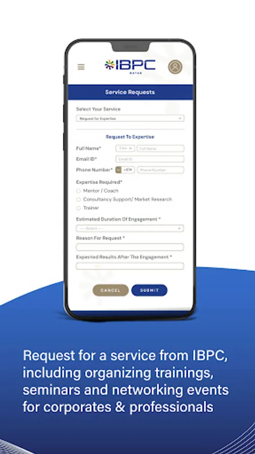 Service Request: Request for a service from IBPC, including organizing trainings, seminars and networking events for corporates and professionals.
