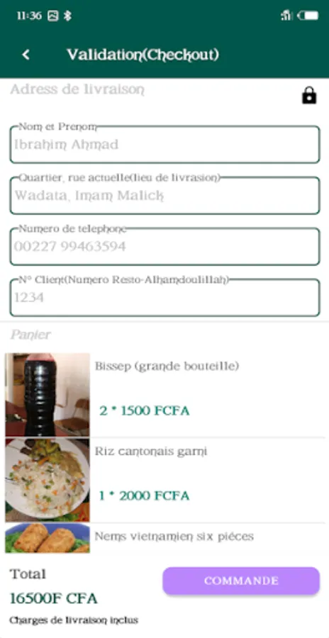 Application for ordering Dish from Restaurant Alhamdoulillah, located in Maurice de lains, Niamey, everywhere in Niamey, the capital of Niger and soon in Dosso.