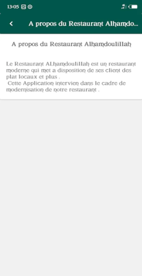 Resto Alhamdoulillah Niger, developed by AlfadjrApps, copyright 2020.