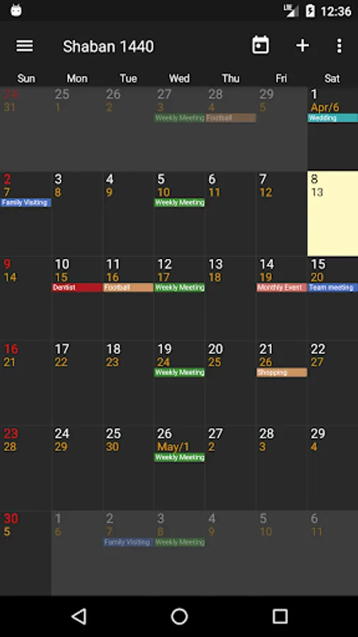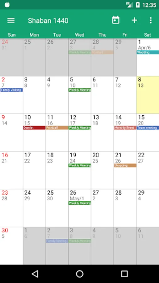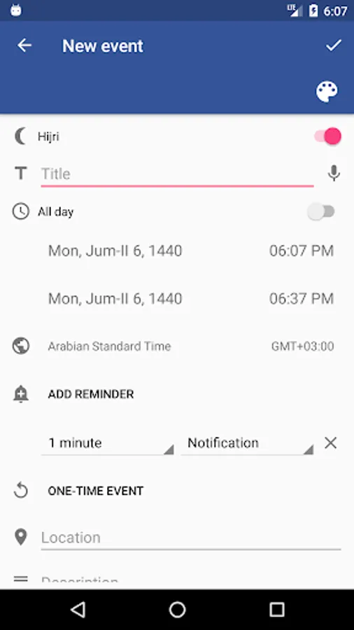 • The possibility of repeating the reminder daily, weekly, monthly, yearly, based on the Hijri or Gregorian calendar