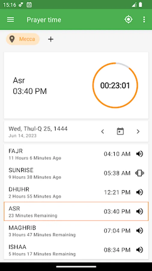 Location: to calculate prayer times according to your current location and determine the direction of the qiblah