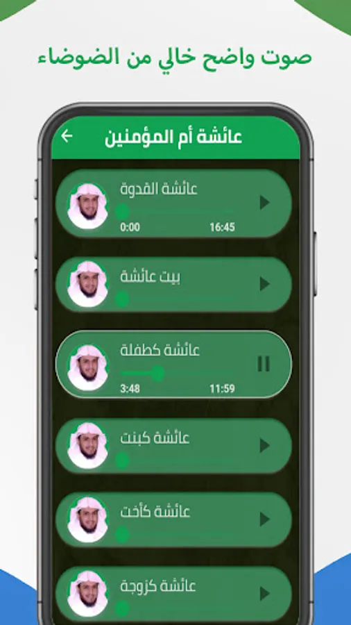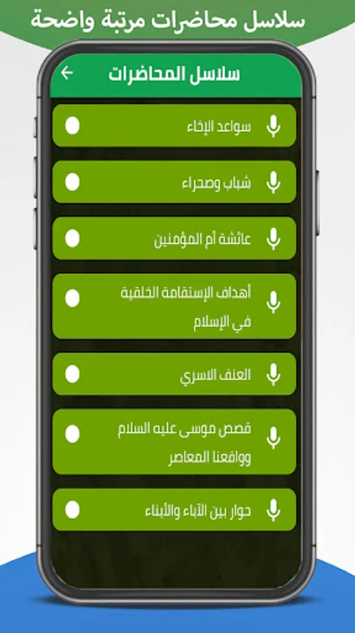Lesson series: The application includes lesson series such as “The Arms of Brotherhood Series,” “Youth and Desert Series,” “Aisha Mother of the Believers Series,” “Domestic Violence Series,” “Moses Stories Series,” and “Dialogue Between Parents and Children Series.” These series provide valuable information and practical instruction for listeners.