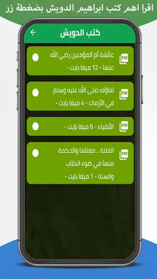 Books by Ibrahim Al-Dawish: The application also provides access to important books by Ibrahim Al-Dawish, such as “The Book of Aisha, Mother of the Believers, may God be pleased with her,” “The Book of His Optimism, may God bless him and grant him peace,” “The Book of the Pure,” and “The Book of Sedition.” These books represent a reference for those interested in Islamic studies and personal development.