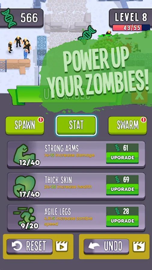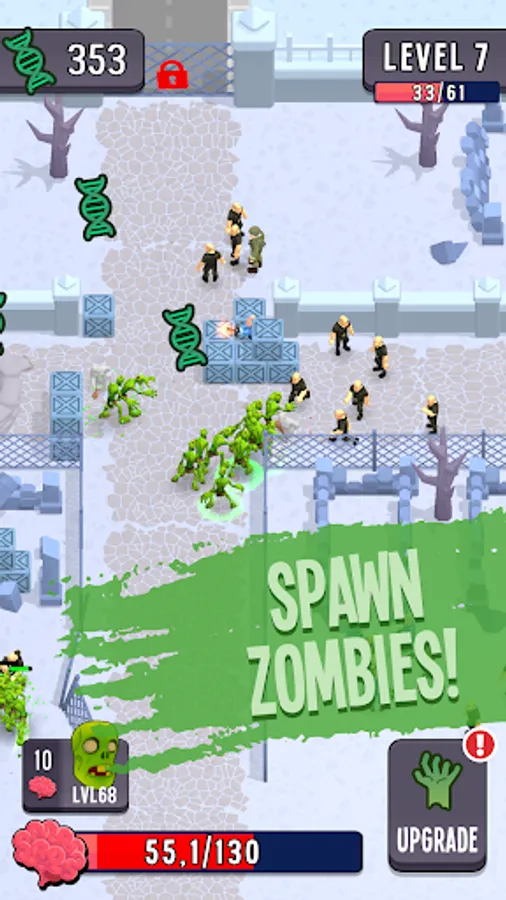 • Earn DNA points and use them to upgrade your zombie army on many different categories. Get powerful enough to be unstoppable!