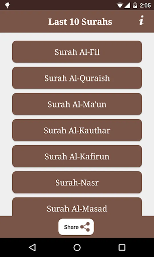 "Last 10 Surahs" provides you Last 10 surahs of quran pak and by this application you can also read translation of every Surah in english and urdu language.