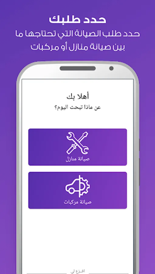 1. Choose the type of service required between home maintenance and car maintenance.