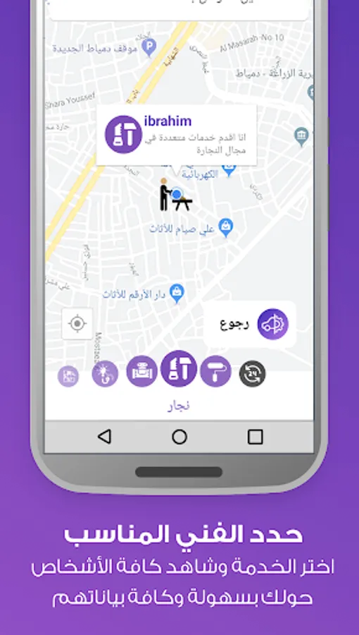 2 - Select the technical classification and see the closest technicians to your place by the map easily.