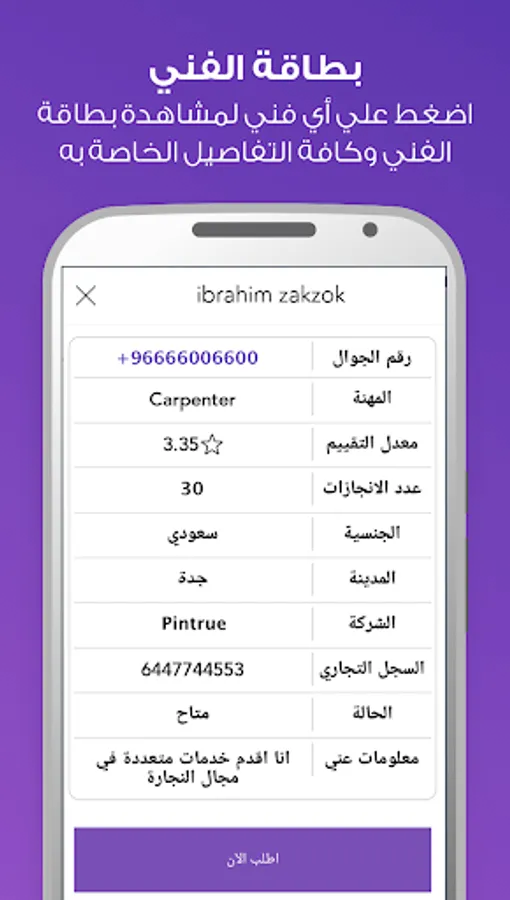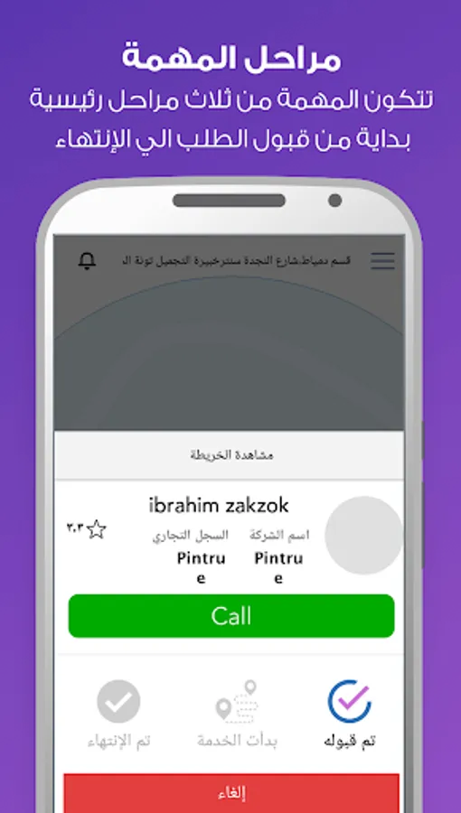 4 - Continue easily and start the application with any technician through the application easily or through the phone number shown to him.